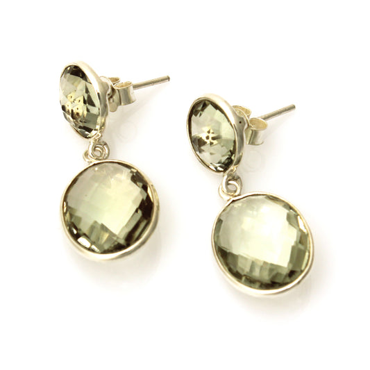 Green Amethyst Hand Crafted Drop Earrings in Sterling Silver