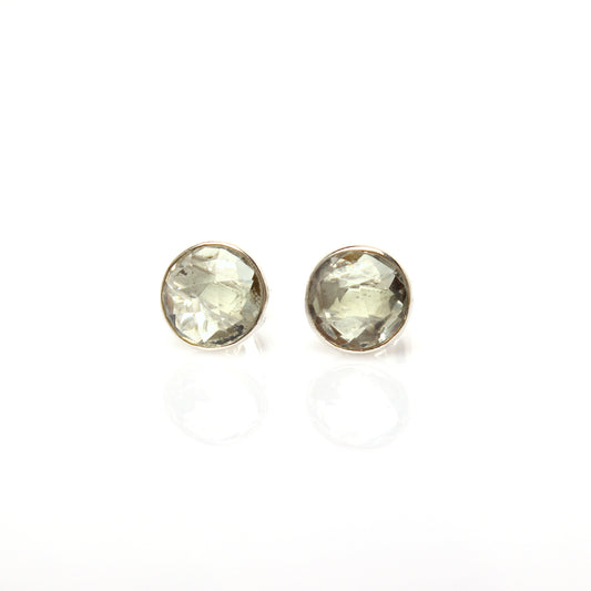 Green Amethyst Stud Earrings - 925 Sterling Silver