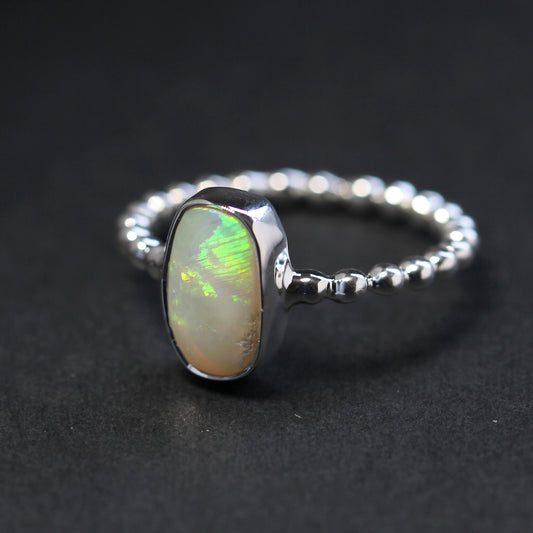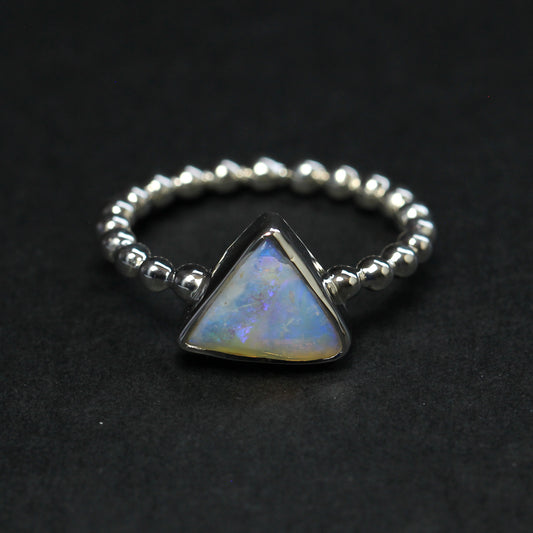 Natural Solid Australian Opal Ring In Silver Size 'Q'