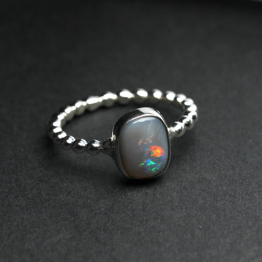 Natural Solid Australian Opal Ring In Silver Size 'O'