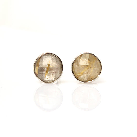 Rutilated Quartz Stud Earrings - 925 Sterling Silver